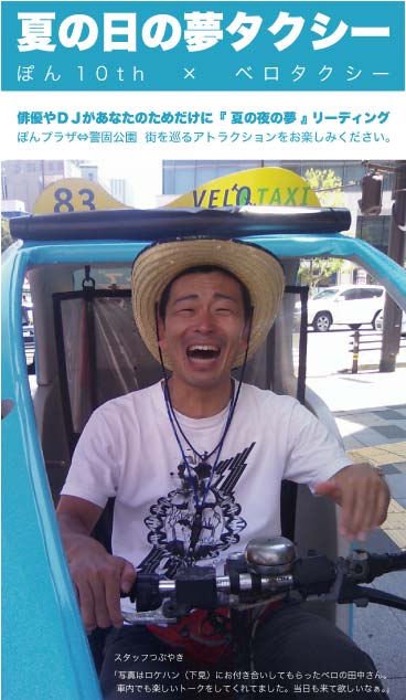 ベロタクシーさんとタイアップして、無料タクシーをぽんプラザ・警固公園間で走らせます