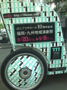 福岡・九州地域演劇祭のラッピングをしたベロタクシーが