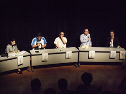 パネリストのみなさんに、劇団の旗揚げ公演で利用した劇場について話をうかがうところからスタートしました。