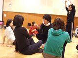 ワークショップの始まりはマッサージから。円になってみんなでマッサージしました。