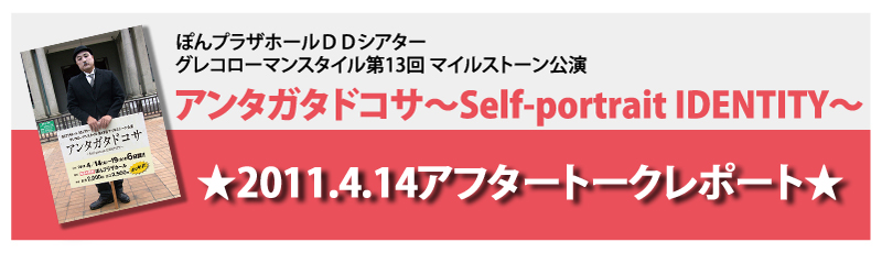 山下:最初は「ぼさっとノヴァ」というタイトルだった。熊本人は、まぁ、ぼさっとしているなというところからそういうタイトル考えた。それからセルフポートレートアイデンティティという、自分自身を映し出す作品として書こうと思った。それはもう90パーセントくらい決まっていたが、「アンタガタドコサ」というタイトルで、劇団員の一人がこれがいいんじゃないかということで話して決めた。