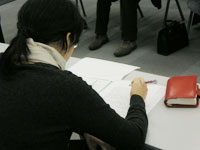 また、添削後には質疑応答も相次ぎ、盛り上がりました。作り手側の劇評への期待感の話になり、扇田さんも「こちらはニュートラルな感覚でいたとしても、作り手方からすると、けなされたら嫌い、ほめられると好きなのは当然だと思う。」とのこと。しかしながら、劇評に載ることが大変励みであり、劇評に取り上げてもらえることを望んでいる劇団もいるので、演劇界全体を盛り上げるために、いい劇評を書き続けてくださいとのこと。