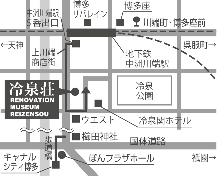→地下鉄「中州川端駅」から冷泉荘へ!