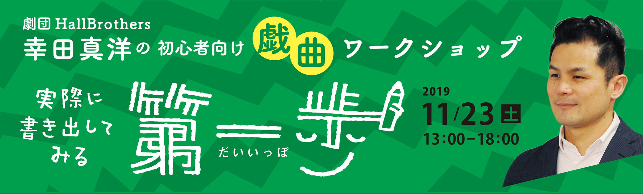 | 福岡で活躍する劇団HallBrothers代表・劇作家の幸田真洋による初心者・未経験者を対象とした、戯曲(演劇用の脚本)の講座です。 戯曲に興味はあるけれど書いたことがない方も、 もう一度書いてみたい方も、一緒に一歩踏み出してみませんか? |