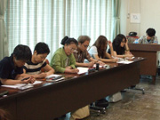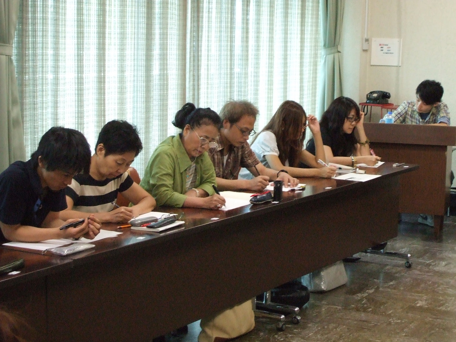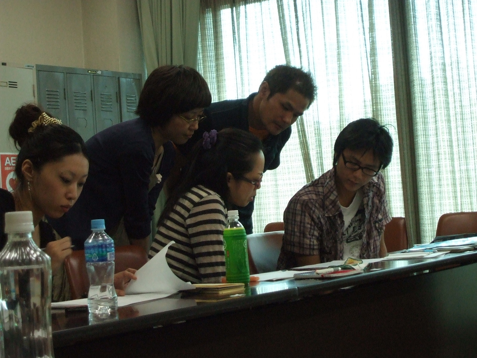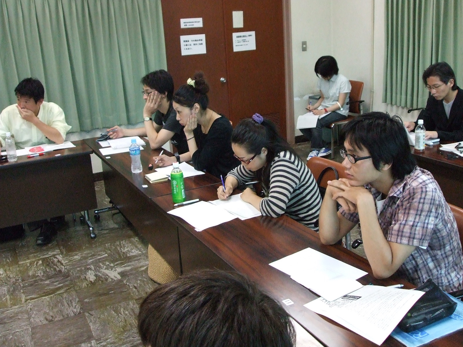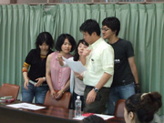 休憩の間も、自分の戯曲を見てあれこれ考えたりする人もいたりと