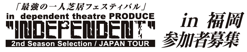 大阪・インディペンデントシアターで行われる最強の一人芝居フェスティバル「INDEPENDENT」。 過去5年間で上演された60作品の中から厳選された珠玉の一人芝居が全国7都市(大阪・東京・札幌・三重・仙台・福岡・沖縄)をツアー。 8月27日(土)〜28日(日)にぽんプラザホールで行われるジャパンツアーin福岡に出演するユニットを九州7県の地域限定で募集します。 選考会では観客による投票を行い、上位のユニットをジャパンツアーin福岡の九州代表作品として推薦します。 優秀作品は2011年のINDEPENDENT:11(大阪)にノミネートされる可能性もあり!!またとないチャンスに奮ってご応募下さい!!