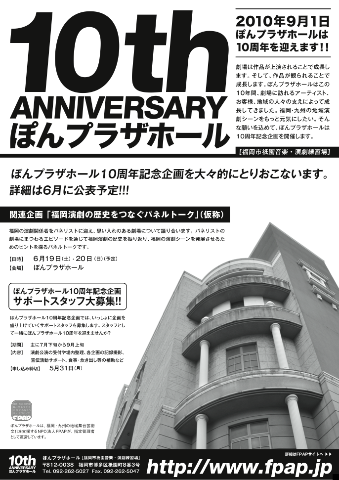 ぽんプラザホール10周年記念企画 サポートスタッフ募集
