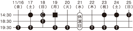 - (■) 託児サービス実施公演(11/19 14:30〜公演のみ)