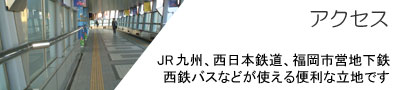 「博多駅」博多口から出て、福岡銀行と西日本シティ銀行の間に伸びる「博多駅前通」を歩くと、歩道橋のある交差点が見えます。その交差点の左手角にあるのがぽんプラザです。駅から12分。 |