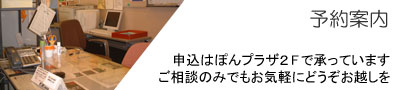 利用の申請はぽんプラザ2F受付でお願いします。電話・FAX等での仮予約等はできません。