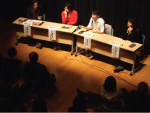 高崎:みなさんは団体性の強い劇団の主宰をされている。一時期プロデュース公演なども増えていたが、今皆さんがやられていて、「自分はこういうことがあって劇団をやっている」とかがあれば教えてください。 多田:劇団員とやるというのと、初めて会う人とやるのとでは、稽古初日でのスタートラインが違うと思う。 中屋敷:まったく違いますね。劇団の公演では長くて3週間の稽古で作品をつくる。「稽古期間が短すぎる」と言われるけど長年それでやっているし、どんどん新しい作品をつくっているので、基礎共通認識がしっかりある。 多田:劇団員は文脈をわかっている人たち。個人的には集合体として進んでいくというのが楽しい。 自分と違う文脈を持った人とやる人が好きな人もいると思う。でも、継続の力は大きいと思う。 柴:自分は徐々に劇団化していったところがある。劇団じゃなきゃだめだなと思って。 演劇はとにかく、複数の人間で長い時間をかけないとできないもの。ある方向性のものをつくろうとすると、劇作家・演出家にとっても俳優にとっても劇団の方がいいと思う。1人の演出家と長く付き合うということが大事だと思う。 多田:いろんな劇作家・演出家とやっている役者より、1人の劇作家・演出家とずっとやっている役者の方が好き。 中屋敷:いろんな人とやっていても、自分の軸だったり、自分のホームをもっている方がいいと思う。やっていく上で、自分は劇団がいいと思った。 高崎:そういう役者の方がうまくなっているように思いますね。その人の時間軸を見ながら課題を与えていく、という育成機能を思っているのは、劇団ならではだと思う。東京はユニットが多いと思っていたが、今はそうでもないらしいですね? 柴:今はユニットよりも劇団の方が多いと思う。 多田:劇場のプロデュース公演でも、昔は個別にやっていたりしたが、今は劇団ごとというのがあるみたい。劇作家・演出家だけピンポイントというのは以前より減った気がする。プロデューサーが何を考えているかとかもあると思うけど。 中屋敷:キャラメルボックスで演出させてもらったときには、劇団は強いところがあると思った。1公演が赤字だったら解散とかいうので公演してないからピンチに強いし、劇団員の執着心というか根性が強いと思う。震災でキャラメルボックスが公演中止にしなかったというのも、劇団の強さを感じた。資本の論理でなくて公演できるというのも。東京デスロックさんも出演者が劇団員じゃないとあちこち連れまわせないですよね? 多田:劇団員じゃないとできないし、あんなに色々やってくれないだろうなとおもう。劇団以外だと蓄積していかないという弱点もあるし。一昔のプロデュース公演は、短い稽古期間で各出演者の得意技オンパレードというものだった気がする。プロデュース公演で劇団ごとやるというのも、プロデュースする側が作品をつくるということを考えだしたのかなと思う。劇団が増えたというより、プロデュース公演が減ってそういうふうにみえているかも。 柴:最小単位で演劇をつくろうとしたとき、作家と制作と演出がいれば演劇はできるのではと思っていた。役者さんは東京にはたくさんいたので。 多田:東京デスロックは3人で旗揚げした劇団だった。劇団の方がいい気がしている。でも、気の迷いだったのではと思うときもあるし、いまいちつかめていないところもある。 高崎:ユニットよりも劇団が増えている、というのは知らなかったのでちょっと嬉しかった。ユニットが増えていて継続性のある劇団が減っているように感じていた。福岡でもユニットが増えてると思っていたけど、話を聞いていて、最近はユニットより劇団が多くなっているかも?と思った。 柴:ユニットは気が楽なんです。劇団って聞くと数十年単位がのしかかってくるような感じが気がしてて。でも、演劇って数時間の作品だけじゃないんだなと思います。数年を活動することが演劇の要素でもあるみたい。 |