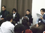 さて、リーディングの後は、10分ほどの休憩をはさみ、参加劇作家の藤原達郎さん、ゲスト劇作家の前田司郎さん、森馨由さん、キャストの皆さん、そして観客の皆さんも含めての『ハバブレイ(ク)』についてのディスカッションをおこないました。