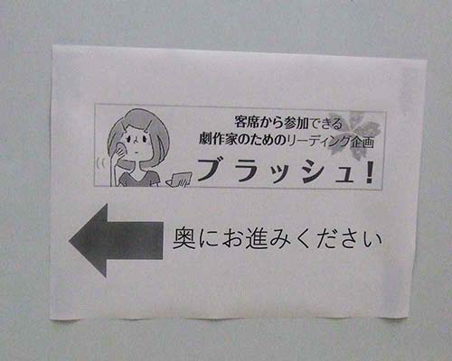この企画は、戯曲ブラッシュアップのためのリーディング企画として、 新進劇作家の新作を、実際に役者による リーディングを行った後、 観客の皆さんを含めて作品についてのディスカッションをして、 作品をよりよいものにしよう、という企画です。