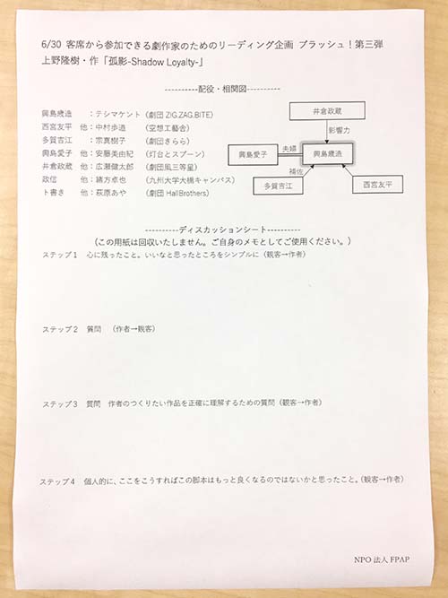 戯曲登場人物の相関図と、配役表が書かれたディスカッションシートをお配りしました。