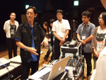 音響編の講師は、I.S.D.の遠藤浩太郎さん。 遠藤さんは学生時代、学園祭などでバンドのイベントをやっていたそうです。その中で、「PA」といわれる業者さんとやりとりすることが。当時の知り合いのPAさんは、親切な人が多く、「予算ないです」と正直に話したら、「予算がないなら体で働け」と、あちこち手伝いにまわることになった、とのこと。 音響のワークショップ、ということで、第1回目は生声NG、ということで参加者の発言も、遠藤さんの発言も、全部マイクを使って行いました。 今回のワークショップでは、 技術的な問題→システムの理解と機材の扱い方 について、をおこなっていきました。 まずは、音響というセクションにおいて守らないといけないルールについてからお話。 まずは、「PA」という言葉について。音響のことをPAといいます。Public Address、という英語で、訳すると「公衆伝達」という意味。「電気的音響拡声装置」という意味です。これは、音声をその場にいる大人数の人たちに、正確に、そして均等に伝達する、ということ。 演説や緊急放送(警報、避難誘導)、施設の館内放送(呼び出し、アナウンス)や舞台音響などもこれに含まれます。 次に、あまり聞きなれないですが、「SR」という言葉について。Sound Reinforcementという英語。直訳すると「音響的再構築」または「音場補正」。演出的に用意された音、音源を現場において再現(再構築)することを意味します。 ここで、スピーカーを切り替えて、実際に音の出てくる方向を変えて音を体感してみました。 遠藤さん:全員に伝えるということでみれば、音の出口(スピーカー)はどこにおいてもいい。しかし、舞台空間になると、人物のほうから聞こえてくるのが自然です。そういうことに配慮しましょう、ということです。なので、スピーカーは、主に、舞台側から客席にむけて設置されます。電気的音響は全て音響担当者の業務範囲と言えます。ただ、警報は別です。どれだけ舞台が盛りあがっていても、災害があれば割り込んで入ってくるようになってます。それが危険から身を守るために順当です。 続いて、「音効」について解説がありました。音効とは、「音響効果」の略です。 音効=公演作品の音効=作品にかかわる全ての音の管理、構築部分を担当→デザイナー 自分たちの劇団内などで音響を担当する場合は特に問題ないですが、外注する場合は、この違いについて気をつけて仕事の依頼をしたほうがいい。という話がありました。 次に、音響のシステム概論として、より詳しく音響の機材の仕組みについて学びました。 音は、 音源としての声やCD・データの音など という流れで出ています。 おおまかな流れについて理解した後は、それぞれの段階で使う機材について、説明を受けました。 音源を電気信号に変換する機器(マイクやプレイヤー)の説明の際に、 ミキサー(音響調整卓)についても、こまかく、名称やどの部分が何の操作をしているのか、ということが丁寧に説明されました。 また、パワーアンプの前後でケーブルの種類が異なるので、これだけ気をつけておいてほしい。ということも。音を電気信号に変換して、アンプで増幅させるので、アンプの前では小さい電気でも、アンプを通したあとは大きな電気になります。 フィードバック・ハウリング(スピーカーから出てきた音をマイクが拾って循環してしまうこと)が起こってしまう仕組みについても説明がありました。 今までは音が出るしくみについてでしたが、続いては公演に向けての基礎知識について。 安全の確保をきちんとしておかないと、スピーカーが倒れたり、ケーブルに足をとられたりして、観客や関係者が怪我をしてしまう可能性があります。 安全の確保には事故を起こさないための準備も含まれる。とうことで、プランの共有についてのお話もありました。 公演の関係者間で、「何をやりたいのか」→「そのために何が必要なのか」→「実現可能なのか」ということを共有・検討したら、今度は劇場と打合せをします。 次のワークショップでは、仕込み図を見ながら仕込みをするので、実際の仕込図も、見てみました。 次回は、実際に仕込みをします! |