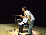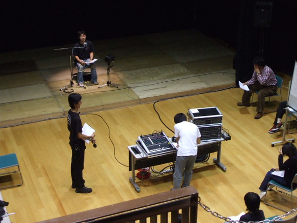 スピーカーから音がちゃんと出ているかの確認、朗読する人の声を聞き取りやすい状態にする調整、タイミングの合わせなど一通りこなしてから本番です。本番中はどんなにとちっても「ギブアップ」を自らが言わない限り、遠藤さんから助け舟は出ません。