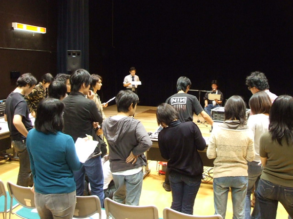 前2日間の講義内容への理解をより深めるためとして、実際の本番を想定した各機材のセッティング、サウンドチェック、音だしを「3級音響機構調整作業検定」というものに準じ受講者に行ってもらうということになりました。