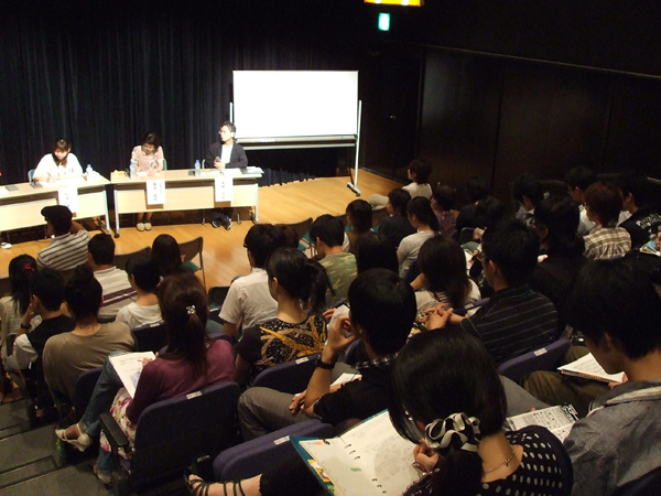 高崎(NPO法人FPAP):こんにちは。司会をします、NPO法人FPAPの高崎といいます。まず、パネリストの方の自己紹介からいこうと思います。所属とお名前でお願いします。 川口(万能グローブ ガラパゴスダイナモス・福岡):福岡で万能グローブ ガラパゴスダイナモスで脚本、演出、たまに役者をやっています、川口大樹です。 日下(演劇ユニット水中花・大分):大分で演劇ユニット水中花で役者、脚本、演出やっています。あと おおいた演劇の会の事務局をしています、日下渚です。 河野(ゼロソー・熊本):熊本でゼロソーというところを主宰して、劇作と演出をしています。あと、熊本演劇人協議会副会長をしています、河野ミチユキです。 松本(F's Company・長崎):長崎からF's Companyの松本恵といいます。役者、制作、衣装やその他色々、やっています。 島田(演劇集団非常口・鹿児島):鹿児島から来ました、演劇集団非常口の島田佳代といいます。主に劇作、そして演出、役者などをやっています。鹿児島演劇協議会の理事もやっています。 高崎:皆さん、ありがとうございます。今日は、昼の二時から、九州各県の大学演劇部が集まって話したサミットの大学版をやっていました。また、裏サミットというのも市内某所でやっていて、成果があったということでした。ここでも良い成果を出していきたいです。 (ここで、お客さんがどこからいらっしゃったのか挙手してもらう) 高崎:他県からいらっしゃった方は三分の二くらいいらっしゃいますね。九州の外からいらっしゃった方も数名いらっしゃるようです。遠くからありがとうございます。 さて、ここから各地域の状況、自分の劇団がどういう活動をしているか、また各地域の劇団数やどのくらいの公演があるかなどを聞きたいと思います。 河野:熊本は演劇人協議会に加盟しているの団体が、今年17団体。それ以外にも加盟していない団体だったり、中心地じゃないところの劇団さんもいるので、主観的だと、県内に30−40じゃないかと思っています。 松本:長崎は年に何回か公演をしているのが10数団体です。ユニットとかが7〜10くらいあり、劇団名がソラで言えるのが20団体くらいです。市外の劇団が盛んになってきている印象です。長崎には小劇場がないので、ぽんプラザみたいなスペースは羨ましい。500キャパを小さくして使ったりとかをするが、使い勝手は悪いですね。行政との提携ができるのなら、2000人規模の大ホールの舞台上舞台(舞台上に客席とステージを作り、舞台上だけをひとつの劇場として利用する方法)が可能です。最近多いのが劇団が持っている稽古場・アトリエを、公演施設として使ったりとかあります。30人くらい入るアトリエを一週間連続でやったりとか、毎月やったりとかあります。あと、長崎市長の公約で、小劇場を長崎にと言っているが、5〜10年かかると思います。演劇公演の数としては年に20くらいでしょうか。アトリエのオムニバスみたいなのを入れるともうちょっとあります。 島田:鹿児島でいうと、劇団は鹿児島市内が多いです。鹿児島演劇協会に所属しているのは8団体です。これには県の高校演劇も入れているので、純粋に劇団数でいくと7団体です。協会に入ってない所が3,4あるので、だいたいトータルで10くらいでしょうか。主な劇場ということですが、松本さんが言っていたように、鹿児島にも小劇場がありません。鹿児島市内だと、2009年にサミットをやった中央公民館というのがあります。ここで公演をするのが一番多いです。あとは市民文化ホールの4階にキャパ400くらいのホールがあります。そこを使ったりしています。 高崎:鹿児島市内から伊佐市まで70kmということでしたが、車での移動ですか。 島田:そうです。 高崎:演劇的な交流などはあるんでしょうか。 島田:2,3ヶ月に一回は協議会の会議があり、それに行きます。あとは、他の劇団さんの公演で市内に行きます。逆に、鹿児島市から伊佐市へ公演にいらっしゃることがあるかといえば、厳しい状況です。 高崎:他の地域もそうだと思いますが、市内とか市近郊は人が集まるが、それ以外の地域は厳しいというのはあるでしょうね。 河野:熊本の場合は年に1,2回県で集まりがあります。 島田:鹿児島は演劇協議会が2007年にできました。それまでは繋がりがなく、鹿児島市内でもありませんでした。熊本みたいな協議会を作りたいということでスタートしました。それから年に1回鹿児島演劇見本市というのをやるようになって、県全体をあげてのイベントとなっています。30分ずつオムニバスでお芝居を見せていく内容で、だんだん年々お客さん増えている印象があります。 日下:大分は劇団数実働15団体くらいです。休止中5団体で、計20団体です。年に1回やるところが多く、年に1回のところと、2,3年に1回とかの団体もあるので、1年間でだいたい平均して10くらいの公演だと思います。今年は多くて、15くらいあると思います。 高崎:新しい劇場については、長崎もそういう話があるとい
