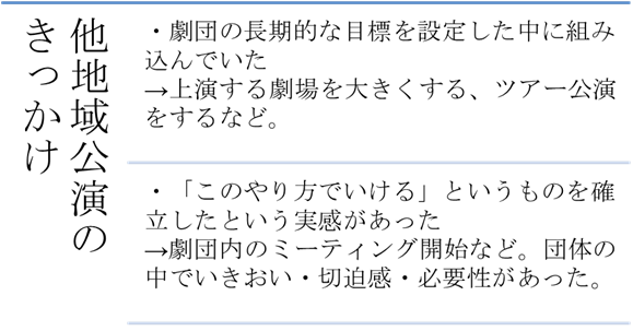 高崎:話を基本的なところに戻しますけどいままで基本的にやっただけで終わらない他地域公演というのを中心にやっていった。その前の段階の話にしたいけど、初めてやった時にどうして他地域公演をやったのか。