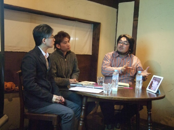 高崎:一方の北川さん、福岡へはいついらっしゃったのでしょうか? 北川:16日に着きました。東京から5日ほどかけて来ました。 高崎:なぜまた5日も?(笑) 北川:そうですね、真冬にスーパーカブの50ccで来ました。 高崎:それはお疲れ様でした。その話は追々また聞かせて下さい(笑)。 |