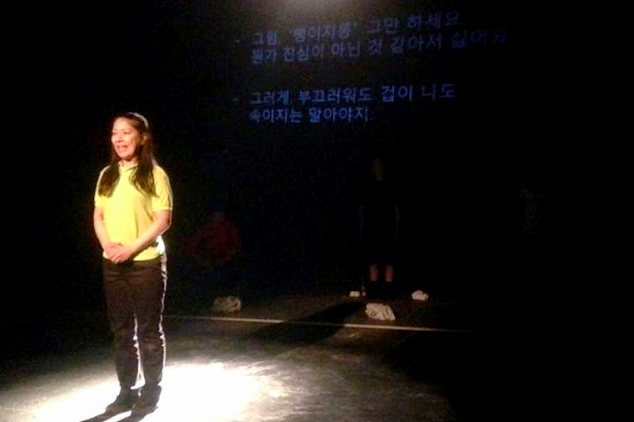 一人じゃ生きていけないからいろんな人と関わりあって生きていくという部分を書いている。(言葉とか国が違っても一緒だという部分について強く感じたのは)公演後の質疑応答の時間に、韓国のお客さん(30代から40代の女性の方)から、「(ムリしないで下さいねという言葉を受けて)でも、ちょっと無理すると先に進みますね」というセリフがあって(日本語で)そのセリフを私に向かって言って下さいとうるうるした感じの目でおっしゃっていた。その瞬間を見て、あっ同じなんだな、と思いました。劇団員がそのセリフをお客さんに向けて言ったら、すごく嬉しそうにしてくださっていました。だから、国が違ってもみんなキツイこととかは一緒なんだなと思いました。